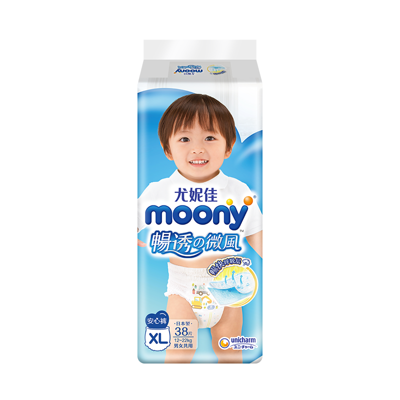 尤妮佳纸尿裤moony畅透微风 裤型XL38(12-22kg)(男女通用)