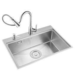 科勒(KOHLER)大单槽304不锈钢加厚水槽洗碗池大容量台上台下洗菜盆水龙头套装 K-26957T-2KD单槽抽拉龙头套餐