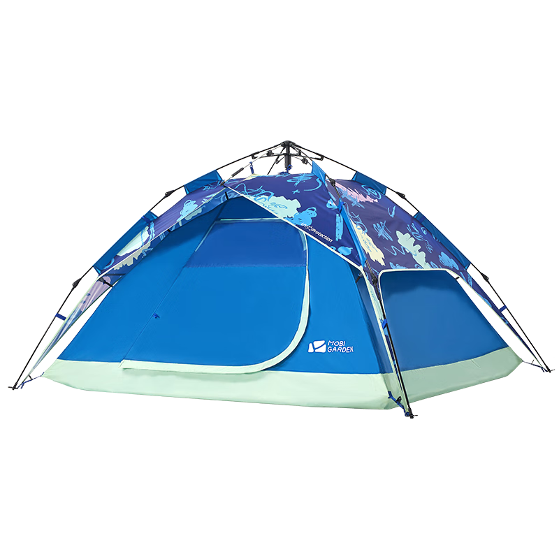 牧高笛 公园休闲大空间防风3-4人三季三秒速开全自动速搭帐篷LD EX19561002 蓝色印花