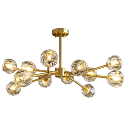 月影凯顿轻奢客厅灯水晶吊灯铜简约客厅灯港式风格餐厅灯魔豆分子卧室灯中山灯具套餐三室两厅 MC350-12头