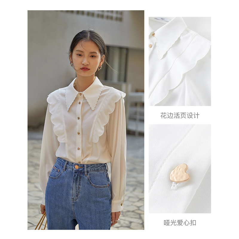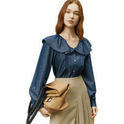 FANSILANEN 范思蓝恩 女士衬衫 22FS2861 大娃娃领弱化窄肩缺陷,宛如盛开的花朵立体造型感强,时尚减龄又很好的优化头身比例。 阅读全文 -