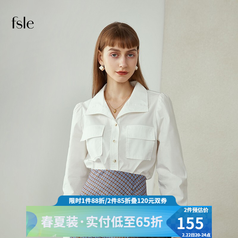范思蓝恩 秋新帅气气质工装风口袋衬衫泡泡袖长款衬衫213089 白色 M