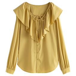独束[双色可选]大码女装法式荷叶领知性小衫女春季新款微胖mm显瘦藏肉 柠檬黄 M