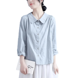 子牧棉麻 女士提花长袖衬衫 Z23CA000009,文艺复古风,娃娃领款式,百搭提花,休闲宽松。 阅读全文 -