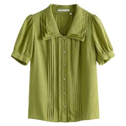 自巧(ZIQIAO)小个子法式复古蔷薇粉翻领衬衫女2023夏季新款高级感短袖上衣 橄榄绿 2【151-153cm左右参考】
