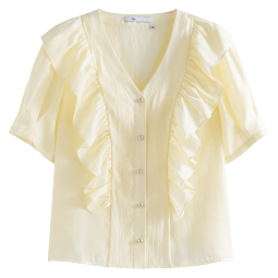 范思蓝恩22FS2238法式荷叶边衬衫女夏季新款气质温柔短袖上衣 淡黄色 M