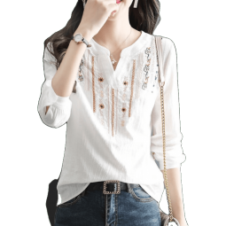 子牧棉麻 女士休闲刺绣衬衫 Z22CA000139 采用舒适棉质面料,V领常规版型,白色打底搭配刺绣装点,休闲百搭。 阅读全文 -