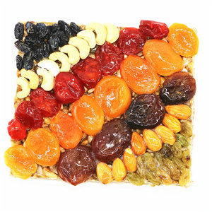 天猫切糕王子旗舰店售价59.9元,可领5元优惠券,实付54.9元包邮到手,第二件半价,拍2件84.85元。切糕王子出品,这应该是新疆最有名的切糕品牌了,还上过央视。 这款切糕的制作,首先把刚新鲜采摘含糖量达30%的甘甜葡萄榨汁,在115摄氏度下熬煮4小时,把90公斤葡萄汁浓缩成30公斤糖浆;然后将腰果、杏脯、圣女果干、核桃仁、无壳南瓜子仁、绿葡萄干、黑加仑葡萄干、葡萄干、蔓越莓干、葵花籽仁、巴旦木等多种坚果放入,最后凝干成型分割好即可。 在制作过程中不添加人工色素、防腐剂、甜味剂,规整的小方形,独立小包装,规格是500g。因为切糕是人工做成的,不能做到完全的均匀,所以每一块切糕都是独一无二的。同时切糕中还富含人体所必需的各种营养成分,包括各种氨基酸和微量元素,除了好吃,还对人体有益。
