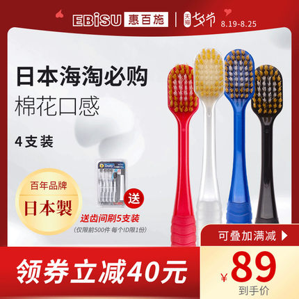 EBISU/惠百施日本原装进口成人牙刷宽头41孔软毛情侣家庭装4支 89.00元