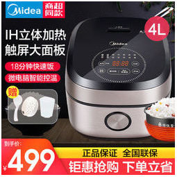 大额神券:美的 多功能IH智能电饭煲 4L 499元包邮(需用券)