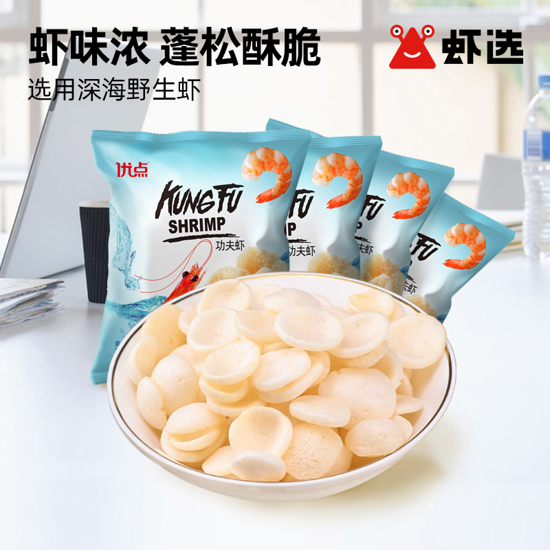 【虾选】功夫虾片40包一箱礼包怀旧休闲零食膨化薯片虾条办公室 【在售价】36.90 元