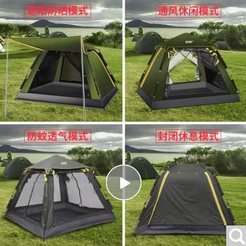 狼行者3-4人户外全自动帐篷 户外防水野营帐篷休闲帐篷 墨绿色 每满299元,可减50元现金