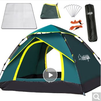 威迪瑞 户外帐篷全自动便携式3-4人防雨野外露营野营沙滩帐篷免搭建帐篷套装装备 蓝色(双人款)-送防潮垫 满99元减10元,满159元减20元,满299元减30元