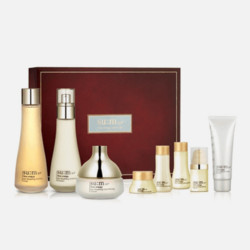 WHOO后是顶级护肤品牌,属于LG健康生活旗下,融入了传统宫廷护肤配方及中医护肤医学,其使用效果好,感受细腻获得了大量的好口碑,在中国的人气日渐高涨,也是很多出国游购买的护肤品首选品牌。WHOO后水妍系列是WHOO后最补水最清爽的一套。这个这款水乳套装含有净化皮肤的白金纳米水和银河水,采用红华肌丹与清气益寿丹等宫廷配方,能充分给肌肤补水,使皮肤恢复湿润柔嫩的状态。套装包含水沄平衡爽肤乳110ml,水沄平衡爽肤水150ml,水乳小样各一支20ml,水研霜4ml,水研浓霜4ml。 WHOO的护肤套装一直都是大家青睐的护肤套装,包括拱辰享、气韵津以及华泫等系列。而不同系列也有分别针对的肤质和功效。而这套WHOO 拱辰享 水妍 水乳套装属于WHOO拱辰享系列,与基础系列的套装相比,这套水妍护肤套装更加侧重于保湿补水基础功效,质地也更加轻盈,相对来说适合年轻肌肤和外油内干的肤质。 水妍系列属于基础系列,主打“改善肌肤内水循环",简单说就是加强肌肤自身的补水保湿能力,套装内的水妍洁面属于清透的啫喱质地,加水打发泡沫,上脸后即使停留时间稍久也不觉得紧绷。水妍平衡水灾特别研制的拱辰秘丹中加入了清气益寿丹,多重保湿成分浓缩在清透的平衡水中,有效滋润不粘膩。水妍平衡乳的成分与平衡水大体相似,水后使用平衡乳,进一步加强肌肤的水润力。