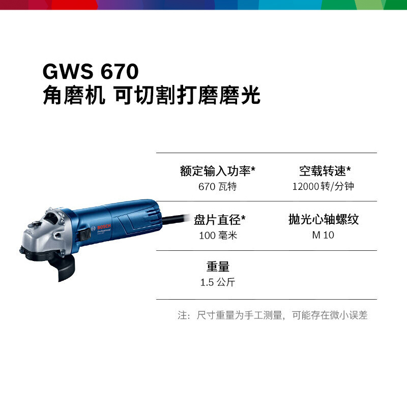 博世(BOSCH)GWS 670 角磨机切割机打磨机磨光机 670瓦 100mm 多功能电动工具