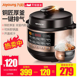 九阳 智能高压电压力锅5L 双胆 239元包邮(双重优惠)