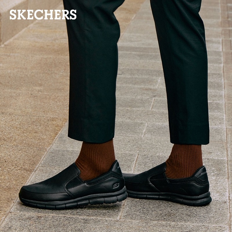 斯凯奇skechers男鞋新款简约一脚套工作鞋舒适低帮休闲鞋 77157 黑色/BLK 43