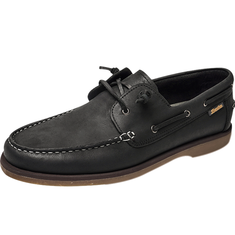 Bata商务休闲鞋男2022春季新款英伦风牛皮平底一脚蹬帆船鞋02155AM2 黑色 41