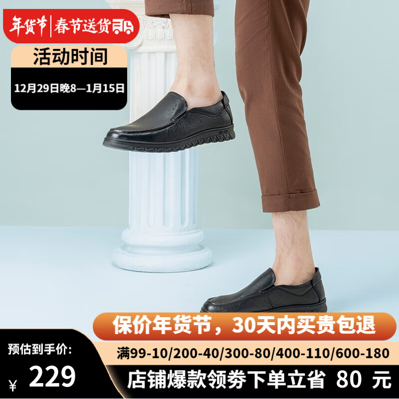 奥康男鞋新款百搭青年时尚男鞋套脚方便舒适休闲男皮鞋工作鞋正装鞋 黑1213214038 38