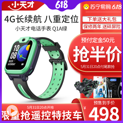 小天才电话手表Q1A若竹绿长续航儿童手表 GPS定位智能手表 学生儿童移动联通电信4G视频拍照手表手机男女孩 付定金减100元,到手价498元