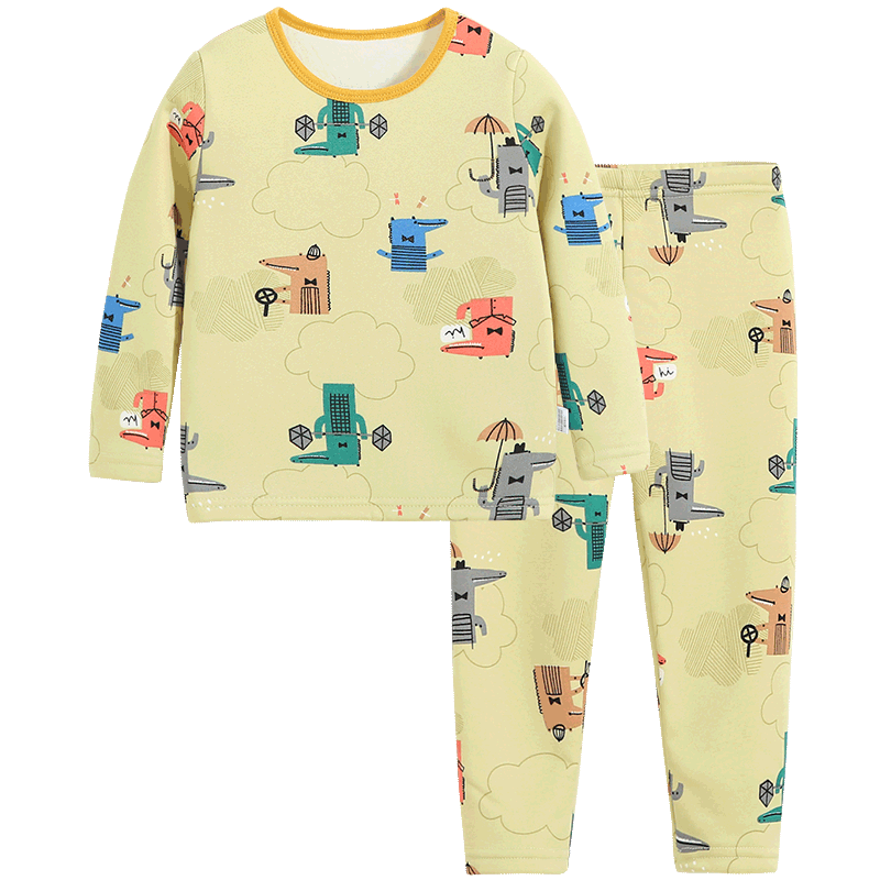 米乐鱼无感儿童保暖内衣套装男女宝宝长袖长裤套装大童睡衣 叠叠熊【舒适保暖+无感反缝】 73