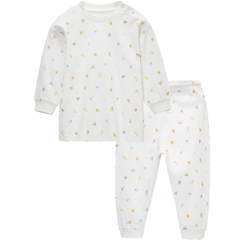 丽婴房宝宝动物乐园系列内衣套装儿童男女童秋季双面布内衣套装家居服 半高领套装 130cm/8岁