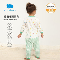 丽婴房童装全开襟套装内衣套装长袖长裤睡衣套装家居服暖姜内衣2022春 绿色 80cm