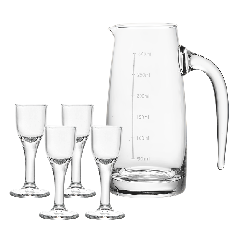 美厨(maxcook)白酒杯分酒器套装 烈酒杯倒酒壶中式玻璃酒具5件套 4个白酒杯10ml+1个分酒器300ml MCB4636