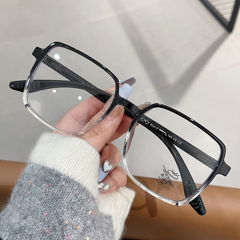 Erilles 正方形TR90素颜眼镜框 女网红ins个性平光镜大框学生近视眼镜架 渐进黑 156变色两用镜片