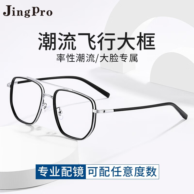 镜邦 近视眼镜大方框眼镜大脸不夹超轻眼镜框钛架男配超薄防蓝光眼镜 201黑银色 配日本进口1.67MR-7防蓝光镜片