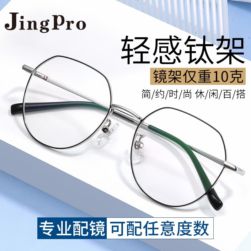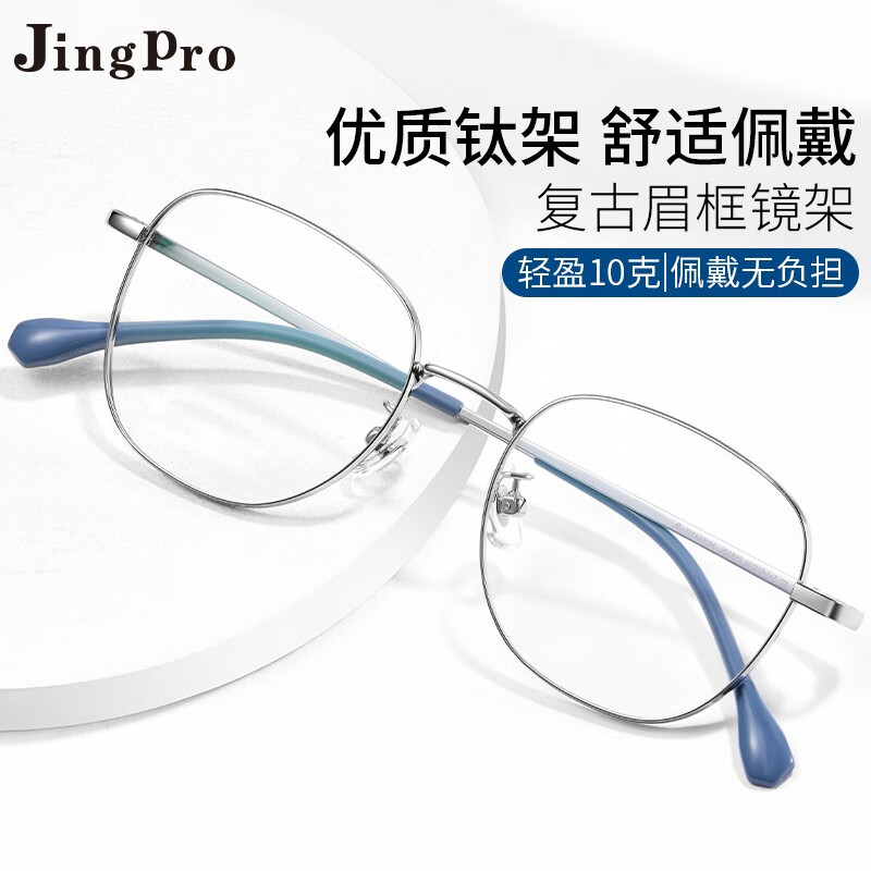镜邦近视眼镜大方框眼镜大脸不夹超轻眼镜框钛架男配超薄防蓝光眼镜 JA8616枪色 配日本进口1.67MR-7防蓝光镜片
