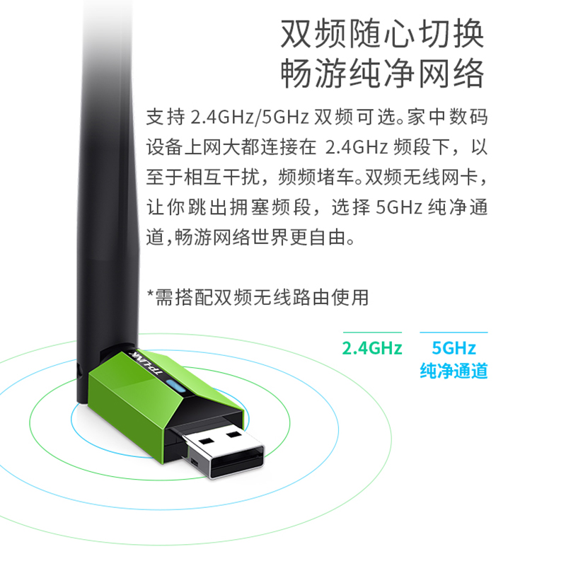 支持 2.4GHz/5GHz 双频可选 采用全新一代11AC技术,5GHz频段下无线速率最高可达433Mbps,配以200Mbps 2.4GHz 频段速率,大幅提升无线整体性能, 没有路由器/AP 情况下,可将网卡插入已联网的电脑、 笔记本、手机、Pad,立即共享 Wi-Fi 支持 Windows XP、Windows 7、Windows 8、Windows 8.1、Windows 10 等多种系统 Windows 10 等多种系统。 阅读全文
