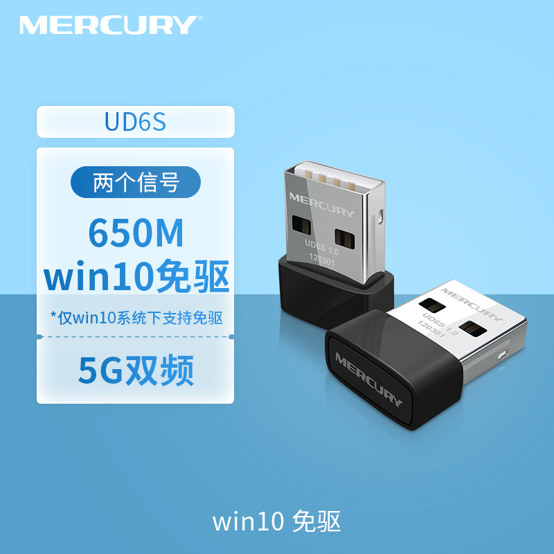 水星(MERCURY)UD6免驱版 5G双频650M USB无线网卡 迷你mini随身wifi接收器发射器 台式机笔记本电脑通用