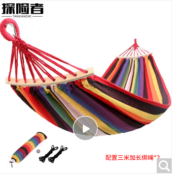 探险者 TAN XIAN ZHE 户外露营休闲加厚加宽帆布吊床 室内弯木防侧翻 红色双人月牙吊床 满减 每满99元,可减15元现金