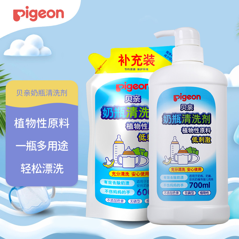 贝亲(Pigeon) 奶瓶清洗剂套装 餐具清洗剂套装 奶瓶奶嘴清洗液套装 植物性原料 600ml+700ml PL156