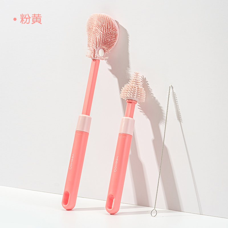 英氏yeehoo奶瓶刷硅胶三合一吸管刷婴儿奶嘴水杯清洗工具长柄便携清洁套装洗杯子神器 樱桃粉