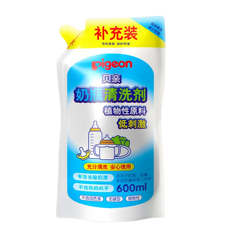 贝亲(Pigeon) 新生儿奶瓶清洗剂 婴儿果蔬清洁餐具清洁液 宝宝玩具清洗液儿童洗洁精 1袋600ML