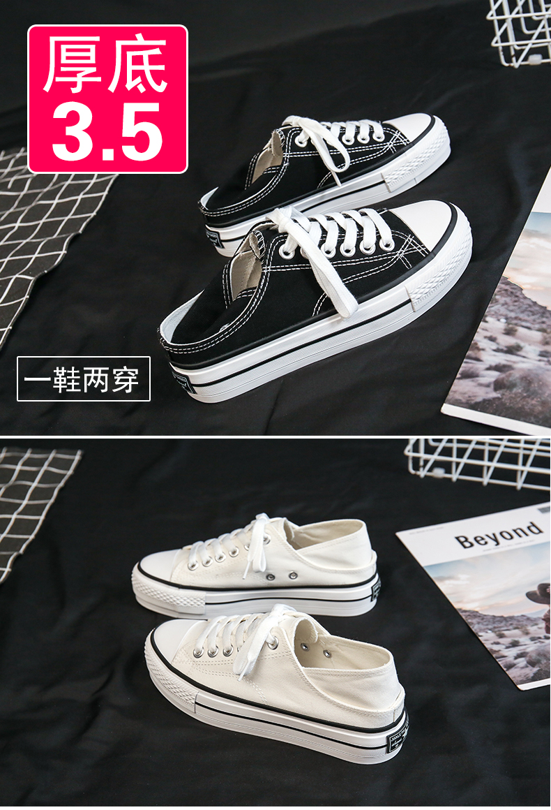 2020新款夏季白色厚底帆布鞋女半拖增高松糕百搭秋两穿踩跟小白鞋 39.90元