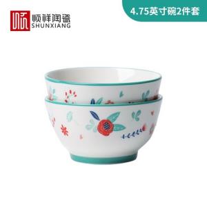 顺祥陶瓷釉下彩小清新面碗4.75英寸2只装 11.06元