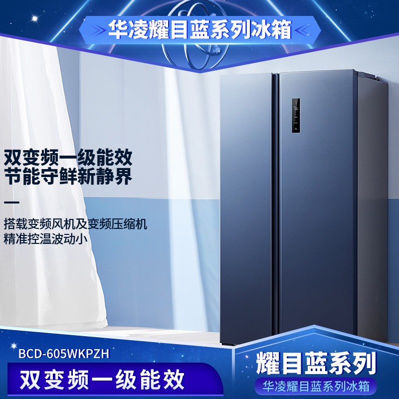 华凌605升双开门对开门冰箱 耀目蓝一级能效双变频风冷无霜PT净味智能APP家电智能 BCD-605WKPZH