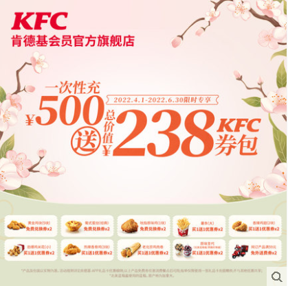 500元电子卡赠总价值238元KFC券包 阅读全文