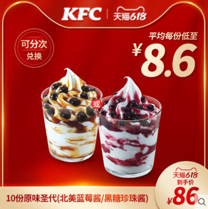 肯德基10份原味圣代(北美蓝莓酱/黑糖珍珠酱) 平均每份低至8.6元! 阅读全文
