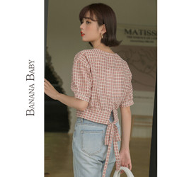 BANANA BABY 香蕉宝贝 D202CS371 绑带V领格子衫 99元