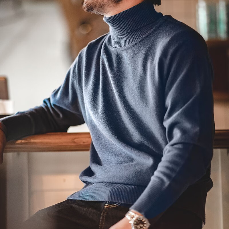 马登工装 纯色翻领毛衣保暖基础款打底针织衫男士秋冬 蓝色 S