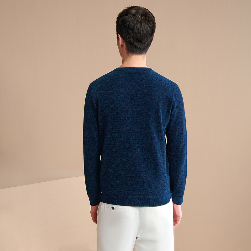 班尼路(Baleno)净色圆领针织衫男日系纯色舒适透气宽松毛衣男休闲青少年长袖上衣 06R S