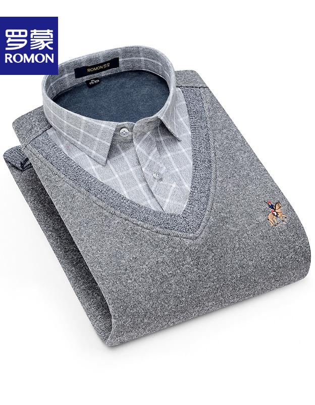 ROMON 罗蒙 男士假两件针织衫 S2Z445106,简约版型,内里加绒,时尚假两件设计,百搭显气质。 阅读全文 -