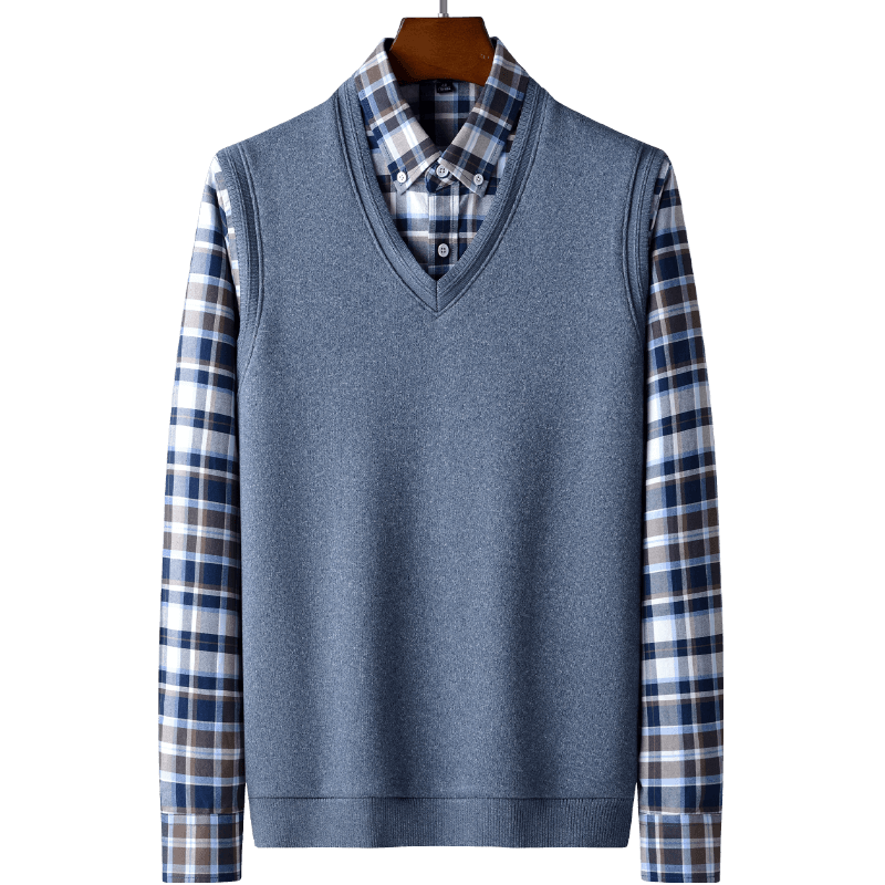 红豆男装 针织衫男假两件含羊毛柔软舒适弹力翻领毛衣 B1云门蓝 175/92A