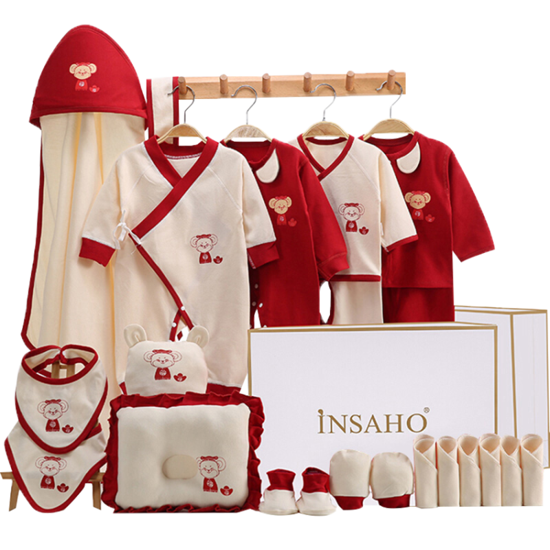 INSAHO 婴儿衣服新生儿礼盒全棉春夏秋冬四季套装满月礼初生礼刚出生男女宝宝送礼物幼儿母婴用品 YEF083 保暖款萌萌兔(23件套)