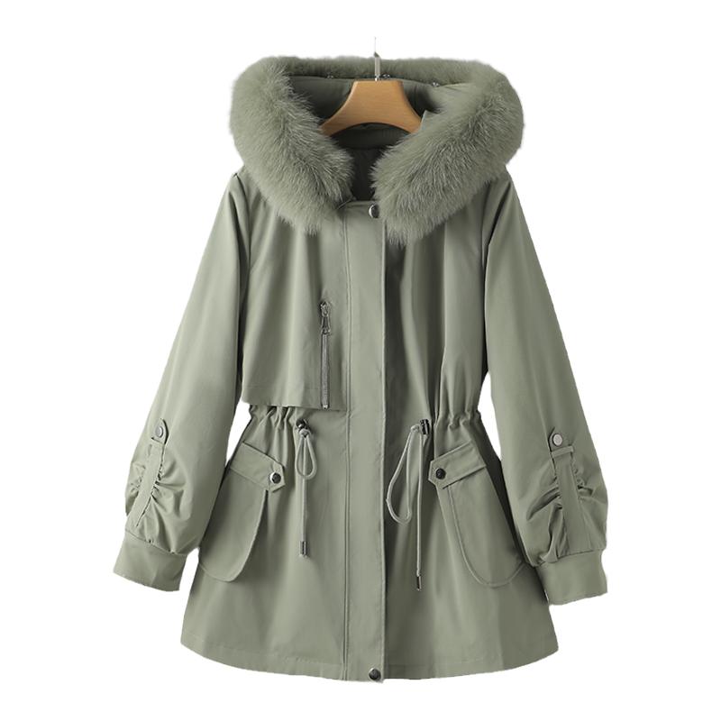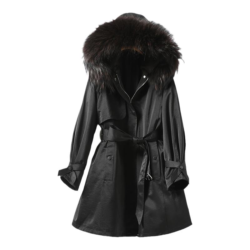 2020冬新款时尚保暖连帽毛领可拆卸内胆长款派克服女 665元