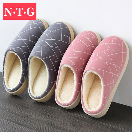 NTG家居棉拖鞋女冬季韩版简约酒店厚底居家室内情侣毛托鞋男保暖 8.90元
